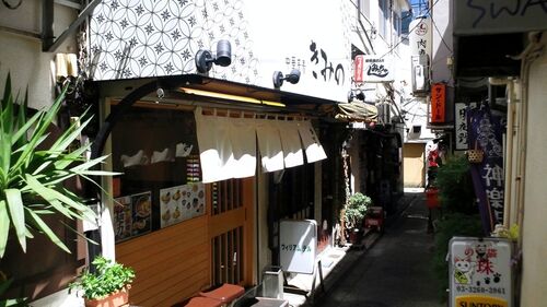 ここ暫く 動物系+魚介系の《つけ麺》を連食し、 やや食傷気味。 そんな時に、冷たい汁モノを供する店が在ると耳にし、 地図を頼りに訪ねてみれば、おやおや ここは『TAKU』が在った場所。美味しい店だったのに 残念だなぁ。 路地の入口に在る看板も その…