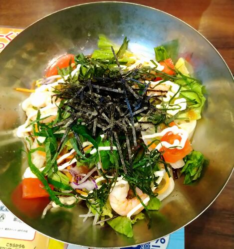 チラシのクーポンを行使するのにやって来た。これで今年の夏は毎月のように標題店に来たことに。 でも、同所での冷たい麺類はこれで終いだな。 11時丁度の入店。それでも既にして、そこそこの客の入り。 タブレットでのオーダーも、念のために紙のメニュー…