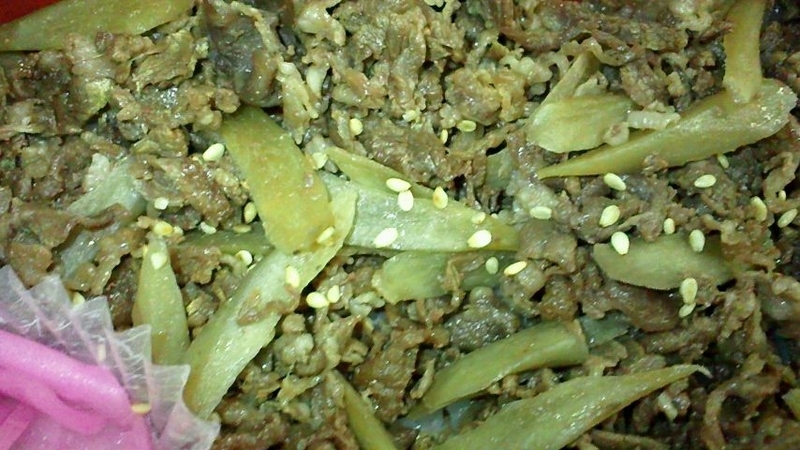 みっしりと牛肉が前面を覆い、嬉しくなる。